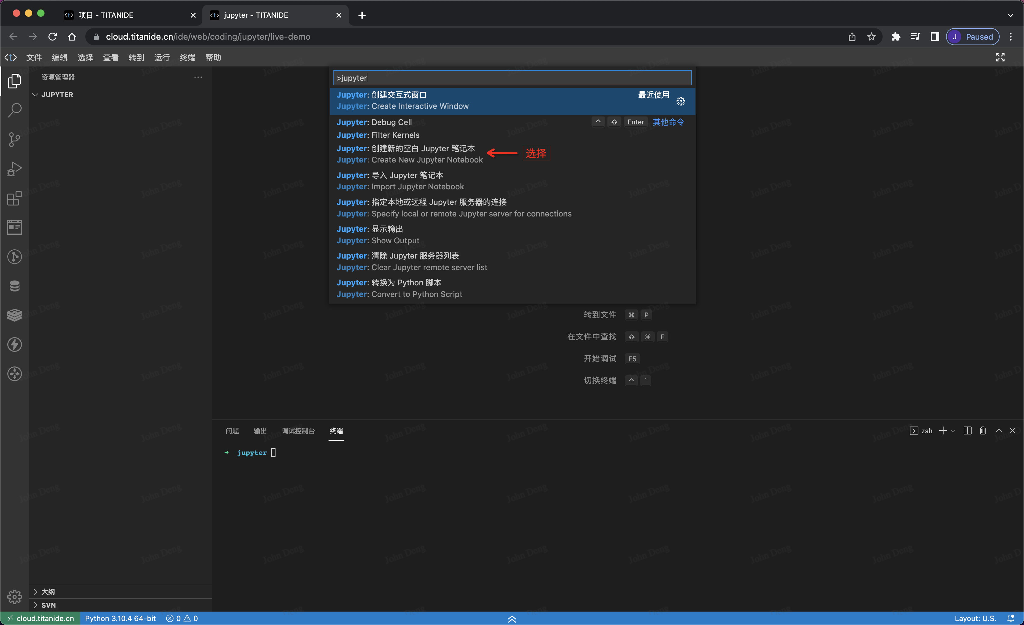 创建新的 Jupyter Notebook